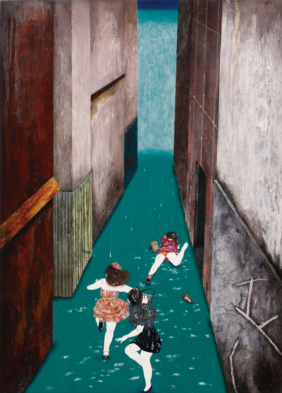 | Acrylic, watercolors, colored pencil on hemp cloth and panel 70.0 x 50.0cm |