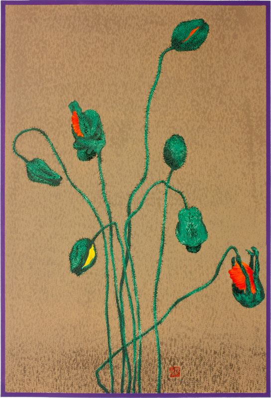 | おとなりの佐々木さんが今年もまた、ポピーの花をおすそ分けしてくれた。 ポピーの花は薄くて少女のよう(くるっと回ったときのスカートみたい)なのに、あの蕾の醜さといったらどうだろう。丸々とした毛深いおっさんの体育座りを連想させるような…。あの可憐な佇まいも、おっさんに化かされているような気がして胡散臭さを感じてしまう。 ほら、花の散った後に残るものは、スネゲやヒゲを連想させる可愛げのない雄しべ!スカートの中に潜む中年。 |