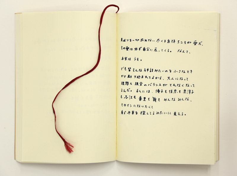| 見返りを一切求めない尽くす気持ちこそが愛だ、その愛は必ず自分に戻ってくる。なんて、本当はうそ。 でも皆そんな神話みたいのを小さなときから刷り込まれてるから、大人になって理想と現実のバランスがとれなくなってるんだ。私には優子も佳奈も奈津子も志江も香里も舞もみんなみんな、ヒロインになりたくて自ら不幸を探してるみたいに見える。 |